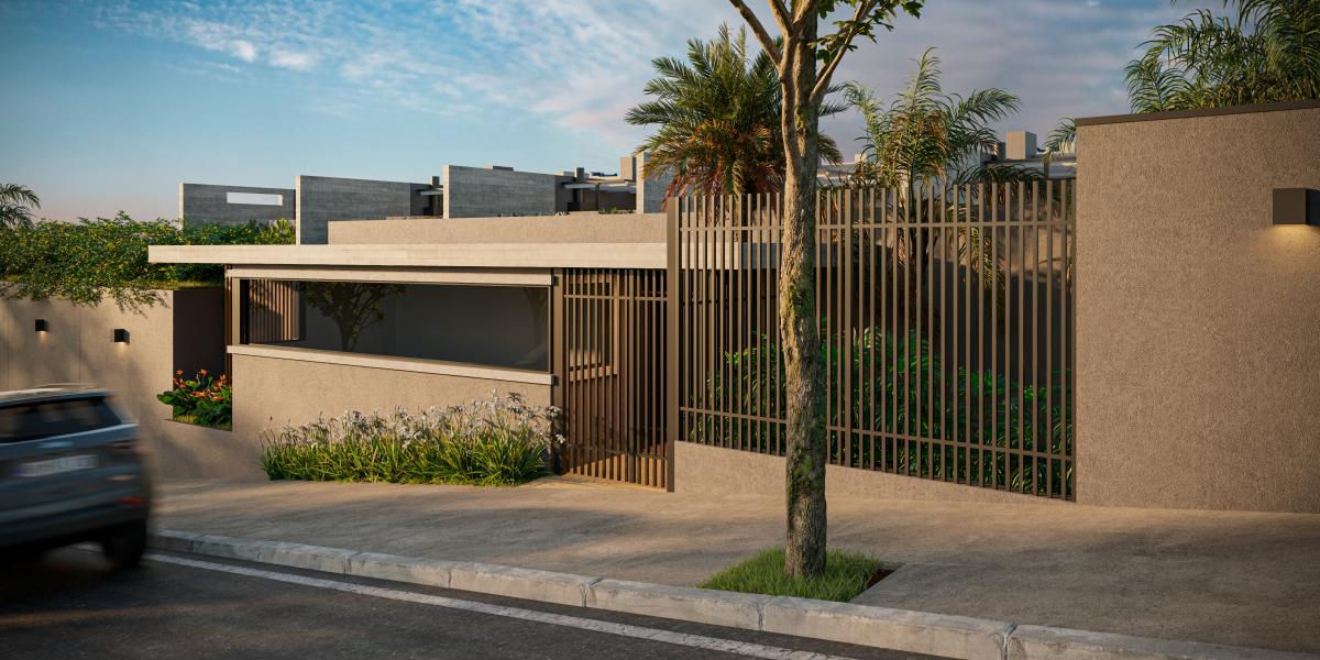 Casas com projeto moderno, fachadas elegantes e integração com áreas verdes.